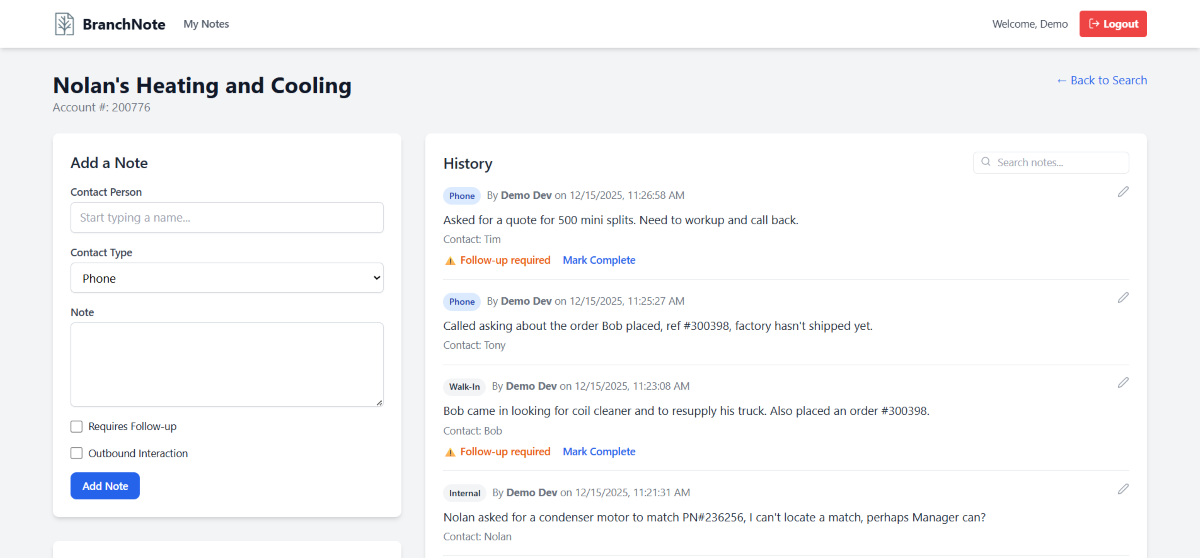 BranchNote creates a structured "digital logbook" for your local operations. It captures the context that usually gets lost—the handshake agreements, the site-specific nuances, and the quick notes that keep a branch running smoothly.